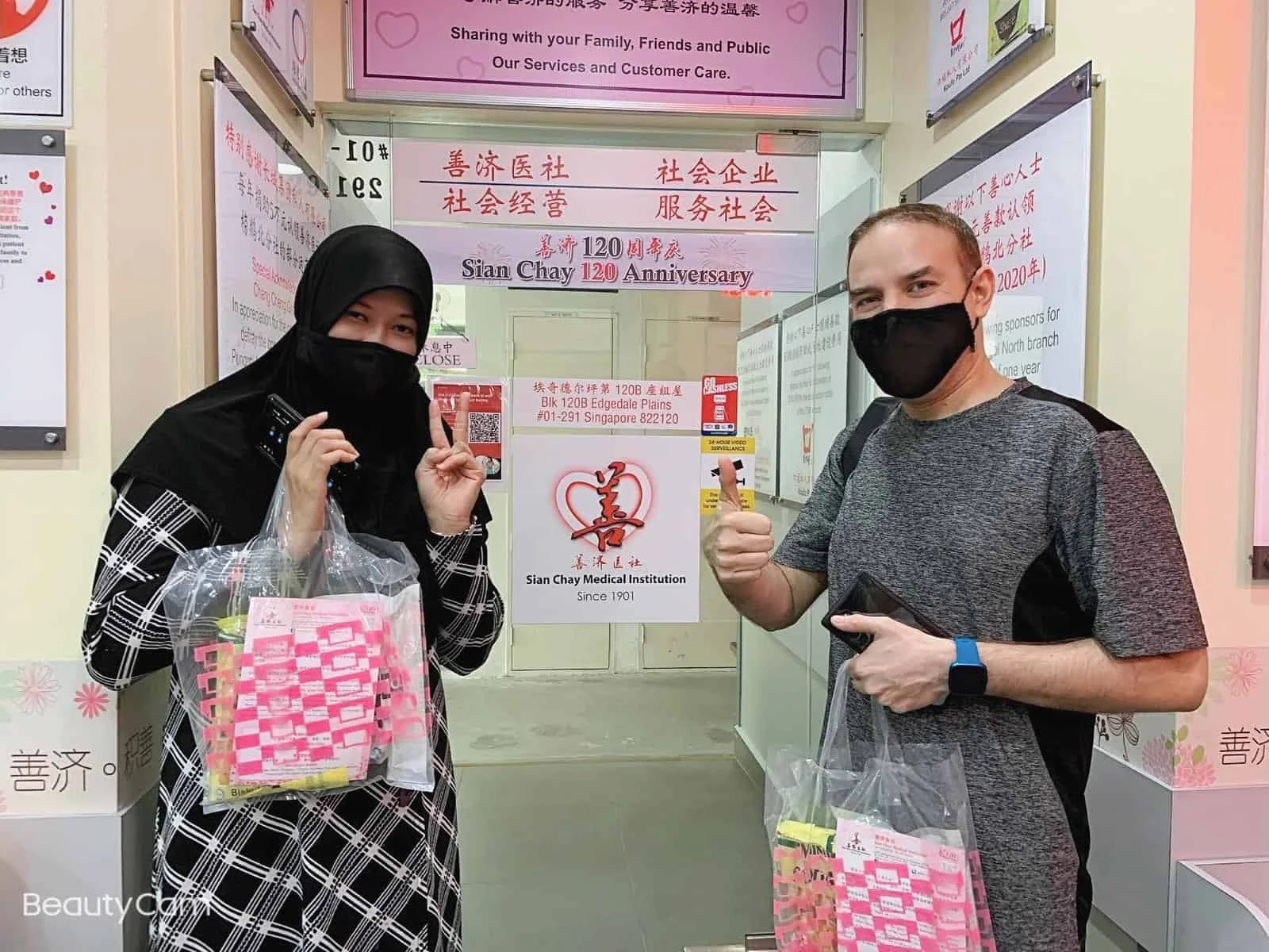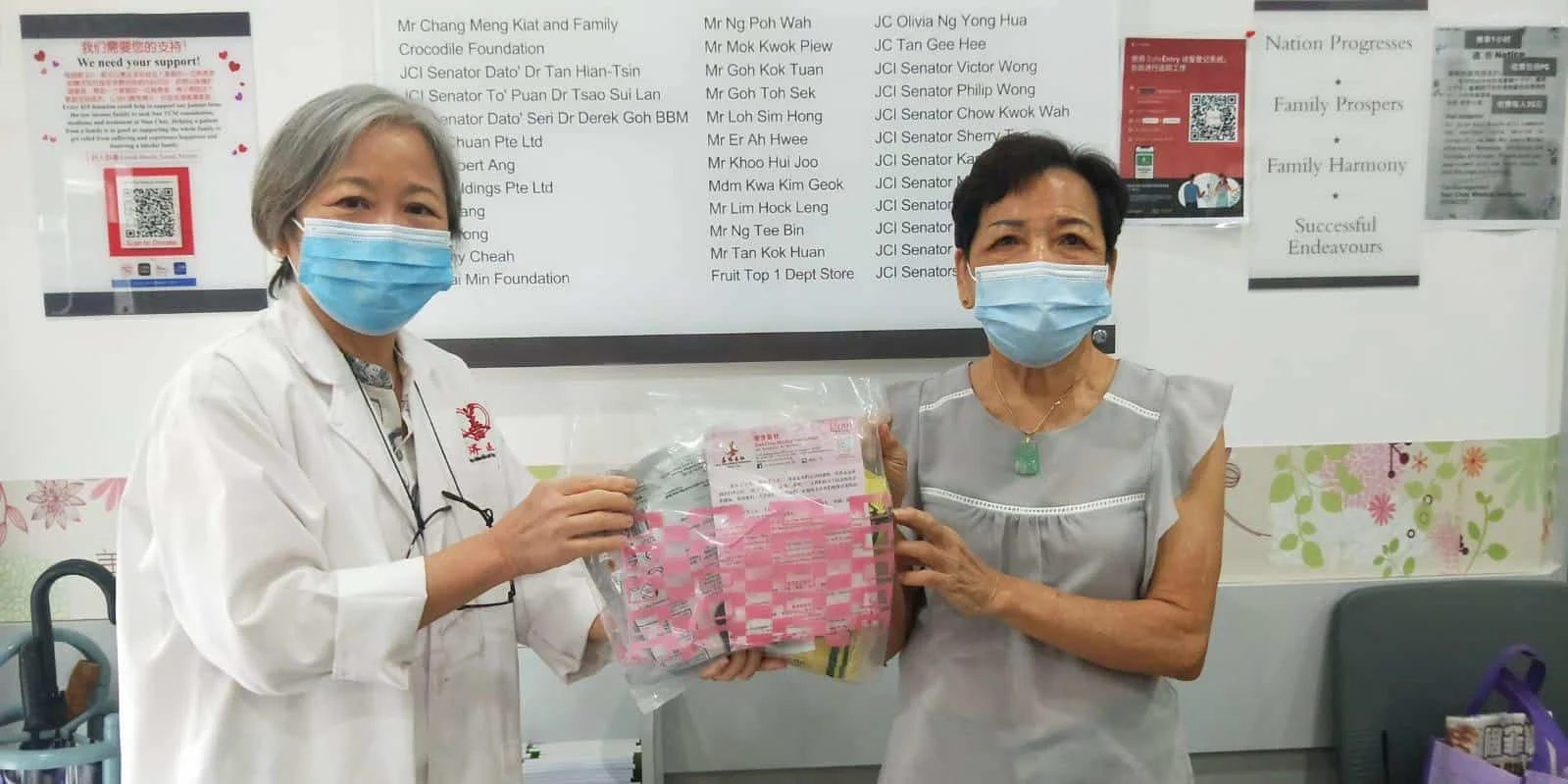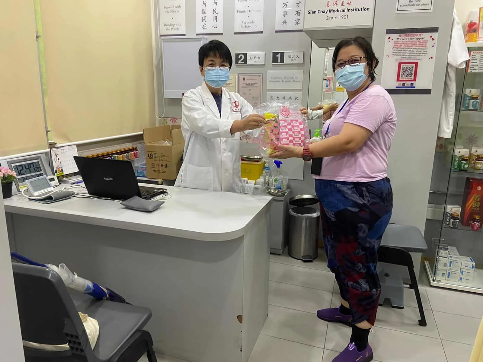 Other than donated $20,000 to “Heart-To-Heart Mother’s Day Tribute and Charity Show” organised by Women’s Wing of the PAP to raise fund for 10 nursing homes as part of their celebrations for Mother’s Day. A total of 9649 Mother’s Day care and share gift bags were also distributed, of which 5000 were distributed to the elderly and mothers who came to Sian Chay branch for medical treatment. In addition, Sian Chay also distributed 4649 gift bags to mothers thru Brickland, Bukit Timah, Moulmein-Cairnhill, Punggol West, Radin Mas, Tampines Central, Whampoa, Yio Chu Kang, Yuhua community groups and Sengkang Secondary School. Each gift bag for mothers contains a packet of 3-in-1 nutritious chocolate powder, two packets of biscuits, a packet of chocolates and a Mother’s Day greeting card from Sian Chay Medical Institution